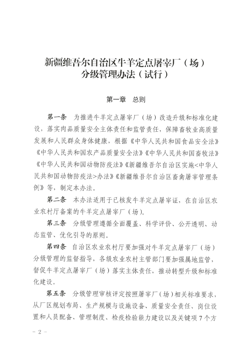 【本部门规范性文件】关于印发《新疆维吾尔自治区牛羊定点屠宰厂(场)分级管理办法(试行)》的通知