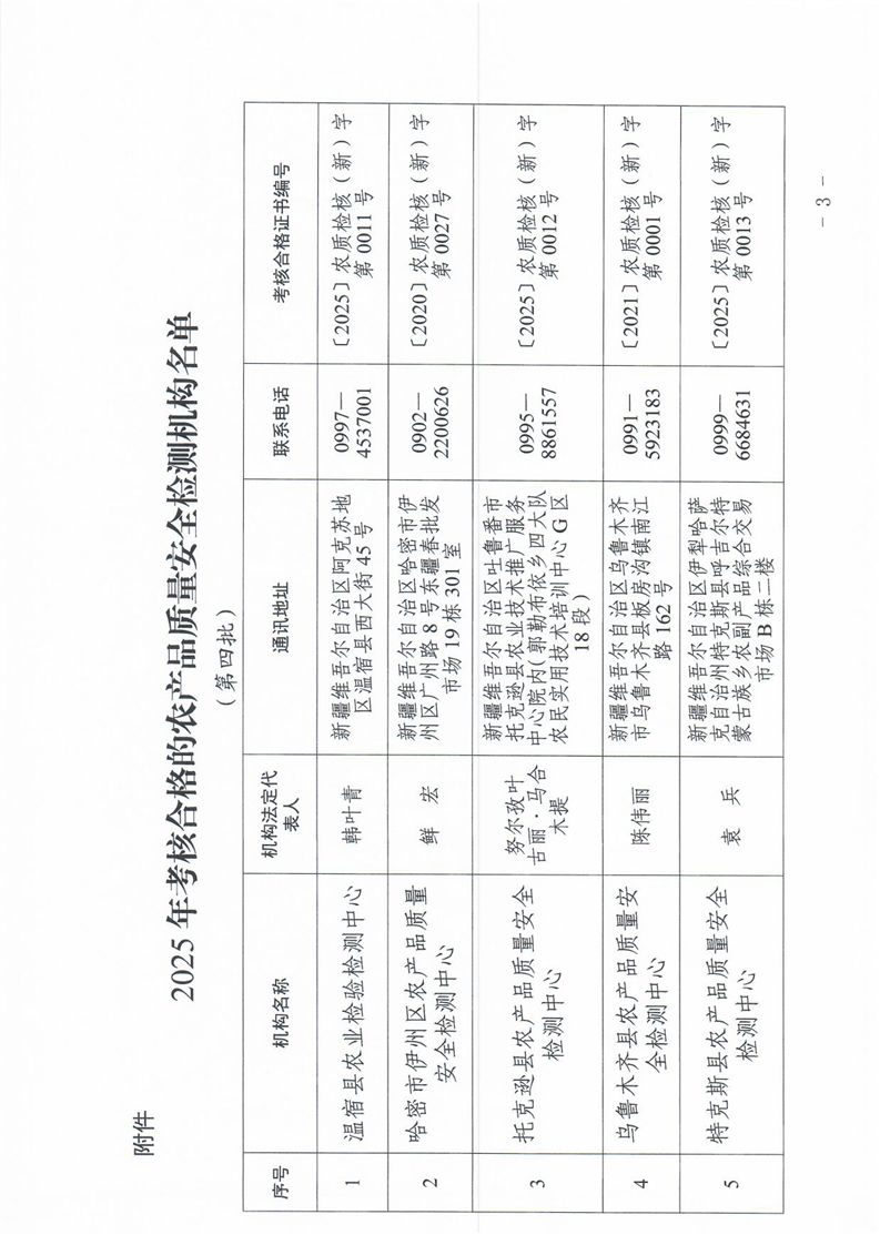 关于颁发2025年第四批农产品质量安全检测机构考核合格的公告